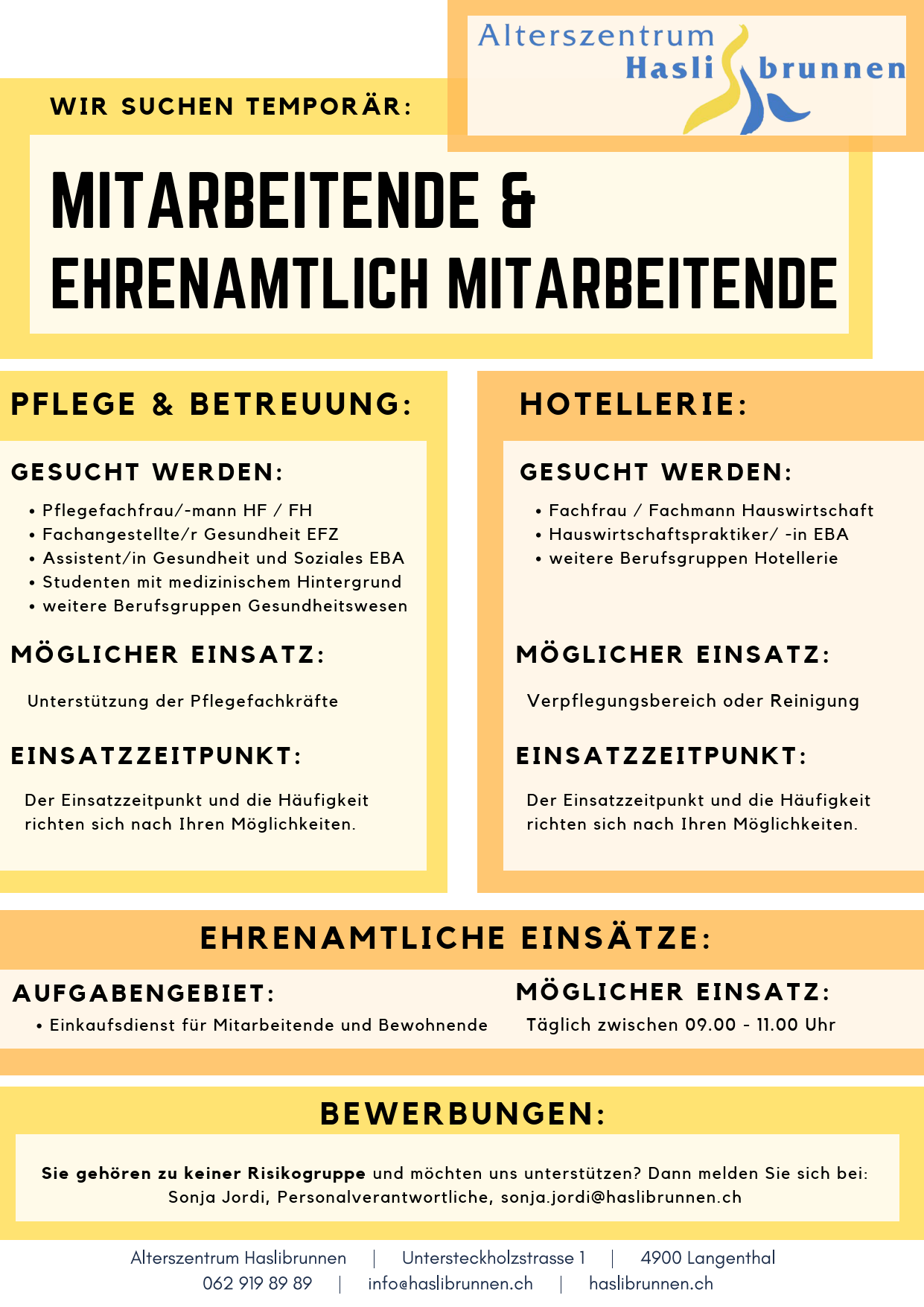Wir suchen temporär Mitarbeitende und ehrenamtliche Mitarbeitende