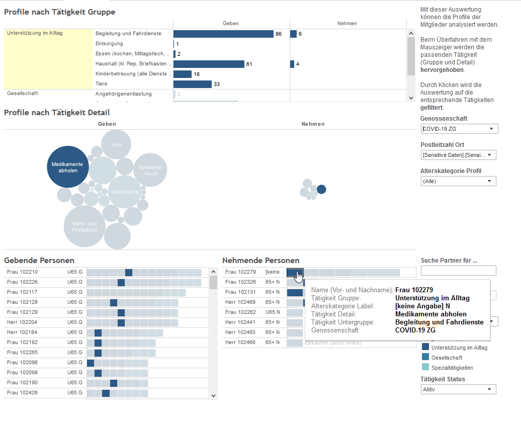 - Toolgestütztes Matching zwischen Gebenden und Nehmenden (i.e. Tandems)