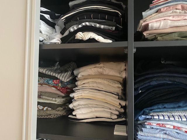 Das beste am Ganzen ist, dass ich nun auch ein Corona-Fach angelegt habe. Alle meine Leggins, Trainerhosen und Feelgood-Hoodies schön gestapelt und auf Augenhöhe. Wer weiss, wie lange es noch dauern wird, bis ich wiedermal eine Bluse anziehen werde.